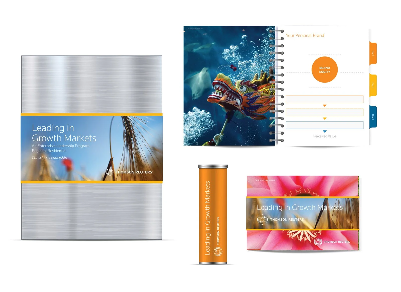 Designed and conceptualized a premium 'Journaling Kit' for conference attendees, featuring carefully curated elements: a motivational journal, photo cards showcasing imagery from the Reuters photo library, and a sleek rolled steel pencil case. Partnered with a printer to develop the industrial design of the custom box and inserts, ensuring the elements were beautifully housed and organized. The result was a cohesive, high-end takeaway that left a lasting impression on participants.